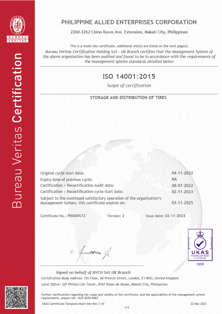 November 4, 2022, marked a pivotal moment for Philippine Allied Enterprises Corporation’s Main Office as it proudly earned its first ISO 9001 and 14001 certifications, confirming the company’s standard for excellence. Fast forward to November 2, 2023, and the journey towards continuous improvement as both the Main Office and Mega Warehouse underwent another rigorous surveillance and certification process, reaffirming PAEC’s unwavering commitment to quality management and environmental stewardship on a global scale.