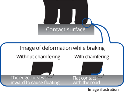 Rounded sipe edges prevent tire deformation and ensure a flat contact with the road, improving the braking performance.